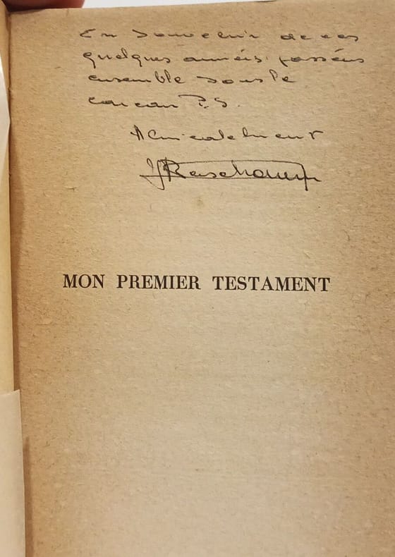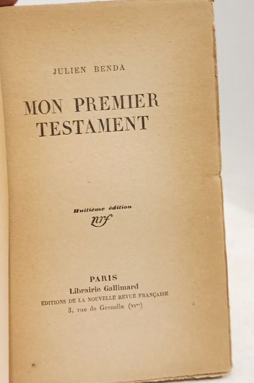 Broché bon état . Contenu propre . Pied de dos fragilisé . 1928. 141 pages . Mon premier testament.