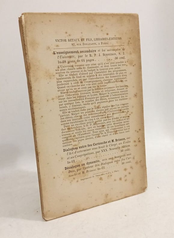 accroc en bas du dos rousseurs sur la couverture quelques rousseurs à l'intérieur tampon sur le premier plat