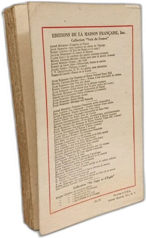 PREMIÈRE ÉDITION. In-8 broché ( 19 X 12 cm) , 231 p. Éditions de La Maison Française, New- York, 1960.