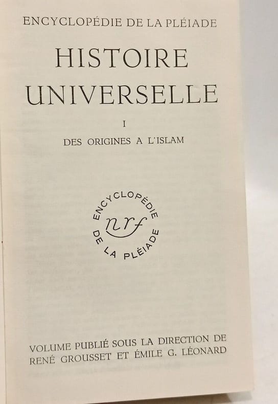 Gallimard NRF "Bibliothèque De La Pléiade" Paris 1982 In-12 ( 175 X 110 mm ) de XXX-1862 pages, pleine basane maroquinée grenat, dos lisse orné d'un semis d'étoiles dorées, sous jaquette illustrée, rhodoïd et étui de carton gris. ( Présentation de l'éditeur ). Volume publié sous la direction de R. Grousset et E.G. Léonard. Très bel exemplaire.