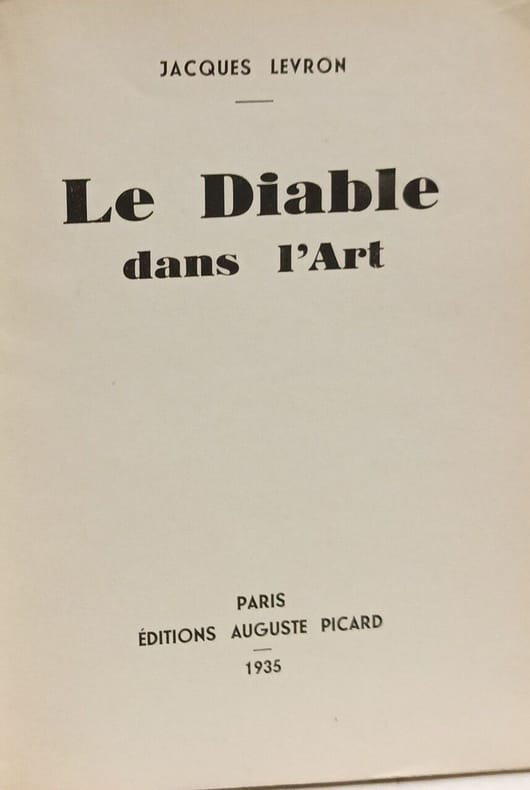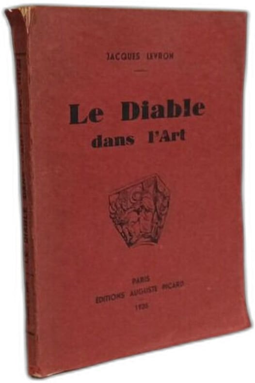 Essai d'iconographie comparée à propos des rapports entre l'Art et le Satanisme. Paris. Denoël. 1957. In-8 (140 x 201mm) bradel toile rouge de l'éditeur, titre en noir, en long sur le dos et figure du diable sur le 1er plat, gardes historiées, 186, 2 pages, nombreuses illustrations la plupart hors texte. Bel exemplaire.