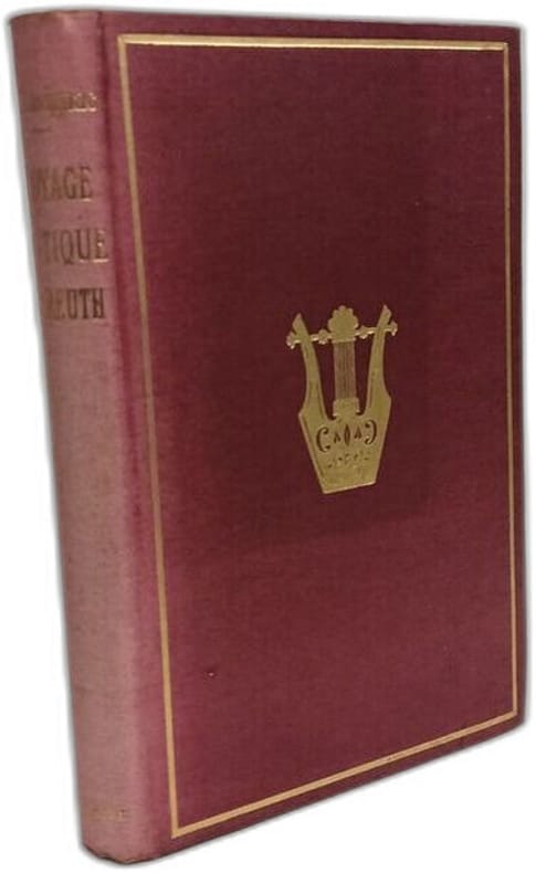 Le voyage Artistique à Bayreuth hard cover , en cuir rouge, avec cartes dépliants et illustrations 190 x 120 mm, 602 pg, en bon etat