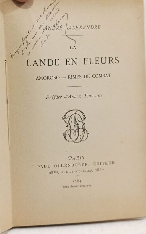 OLLENDORFF PAUL. 1884. In-12. Broché. Etat passable, Plats abîmés, Dos abîmé, Intérieur acceptable. 104 pages - Quelques pages et 1er plat dessolidarisés du corps de l'ouvrage.. . . . Classification Dewey : 841-Poésie