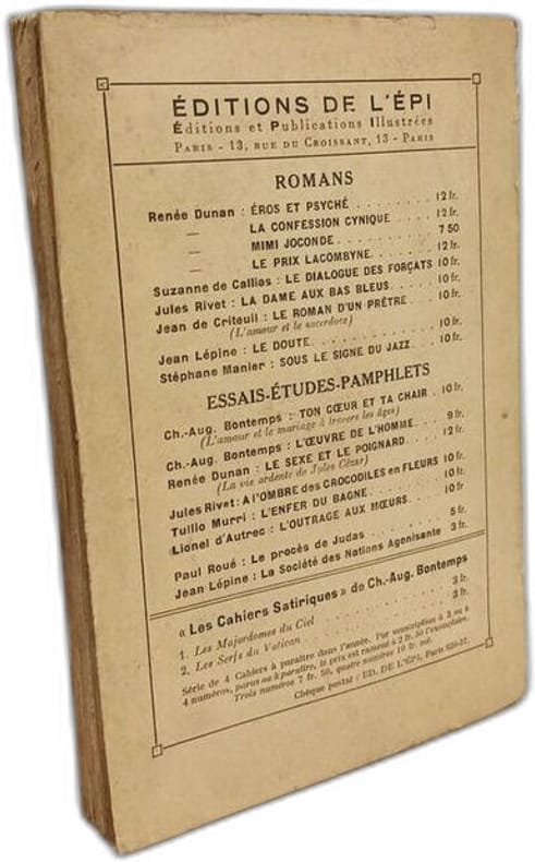 Paris, éditions de l’épi 1924 In-12 19 x 13 cm. Broché, premier plat illustré d’une vignette et imprimé de lettres rouges et noires, 239 pp. Bon exemplaire.