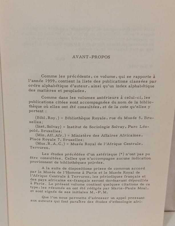 Musée royal de l'Afrique Centrale Tervuren BE 1959 in8. 1959. Broché.