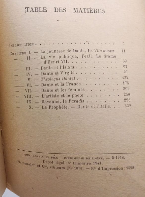 Discours pour l'inauguration du Congrés International réuni à Florence à l'occasion du 7e Centenaire de dante (20 Avril 1965). Edition originale, ici un des 115 sur vélin. * Voir photographie(s) / See the picture(s). * Membre du SLAM et de la LILA / ILAB Member. La librairie est ouverte du lundi au vendredi de 14h à 19h. Merci de nous prévenir avant de passer,certains de nos livres étant entreposés dans une réserve.