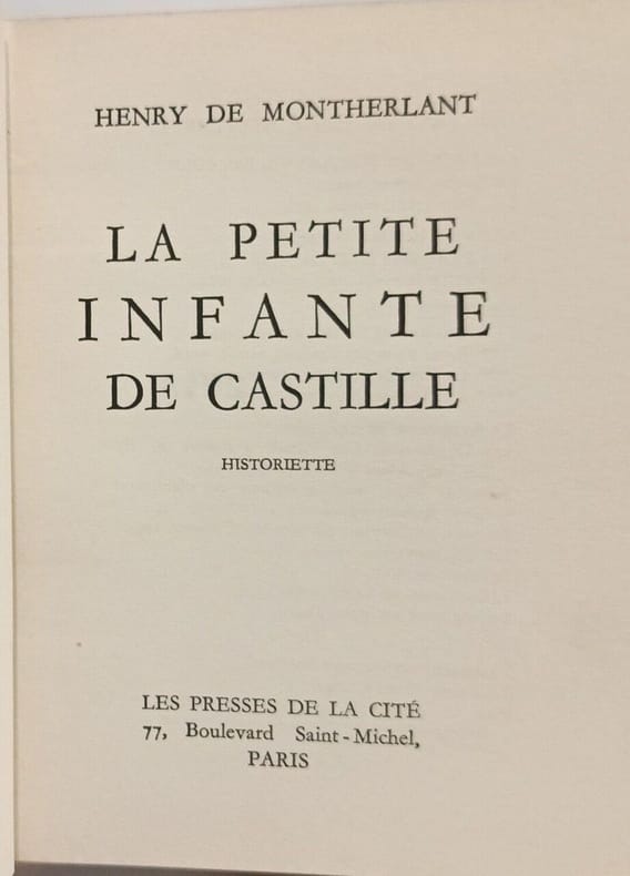 [GRAU SALA. ] - MONTHERLANT, Henry de (Henry de MILLON de MONTHERLANT dit ...1896-1972) - GRAU SALA, Emilio(1911-1975)La petite infante de Castille . 1951 - Bon état. Édition numérotées, un des 3500 exemplaires sur vélin crème des Papeteries de Rives (1268).