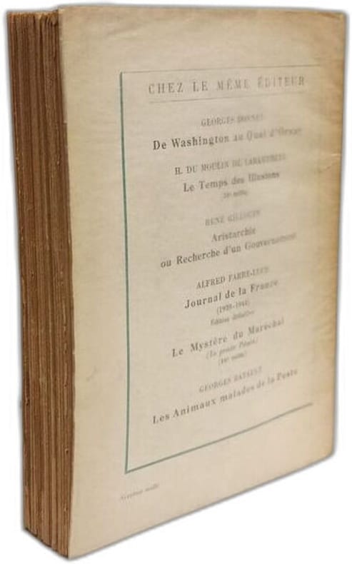 Les Editions du Cheval Ailé. Non daté. In-8. Broché. Etat d'usage, Couv. légèrement passée, Dos abîmé, Papier jauni. 351 pages non rognées. Non daté. Certains cahiers non coupés.. . . . Classification Dewey : 940.533-Pétain