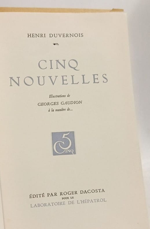 1936 S.l. (Paris), Edité par Roger Dacosta pour le Laboratoire de l'Hépatrol, s.d. (1936). In-8°, en ff., couv. rempliée crème impr; et ornée en bleu et noir, emb. orné.