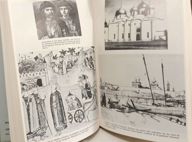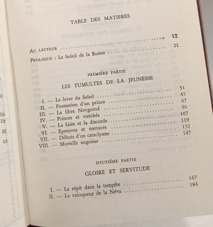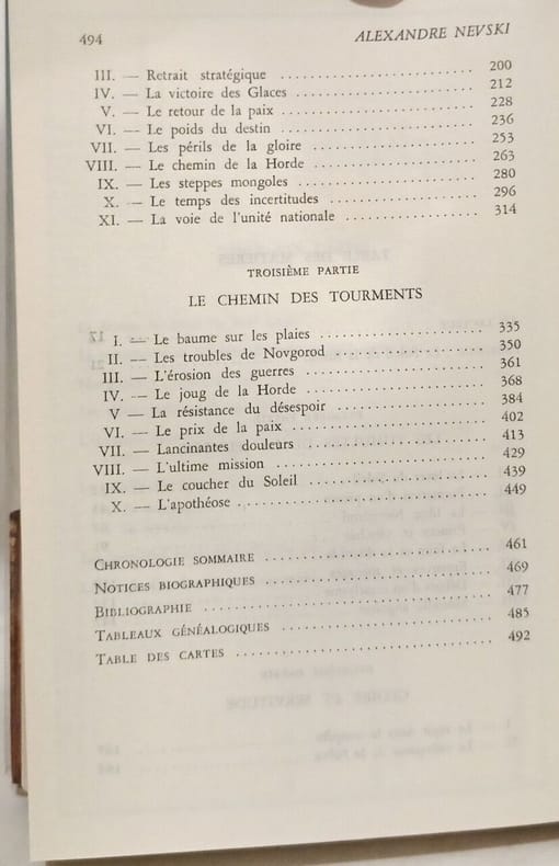 Perrin 1983, in-8 relié skyvertex rouge de l'éditeur sous demi-jaquette illustrée, 494 p. (cachets de bibliothèque, sinon très bon état ; non réédité) Cahier illustrations, cartes, chronologie, notices biographiques, bibliographie et généalogies. Excellente biographie d'une des plus grandes figures de l'histoire russe, contemporaine de saint Louis.