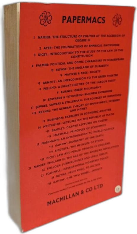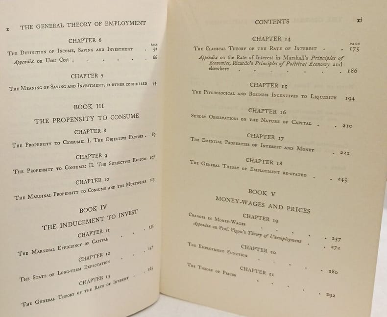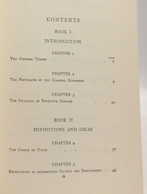 Un jalon de l'histoire des théories économiques. Premier tirage Londres, Mac Millan, 1936. 1 vol. (145 x 220 mm) de 403 p. Cartonnage vert et jaquette imprimés de l'éditeur, sous emboîtage. Édition originale et premier tirage. Ex-libris manuscrit «K. S. Venkataraman», au premier feuillet.