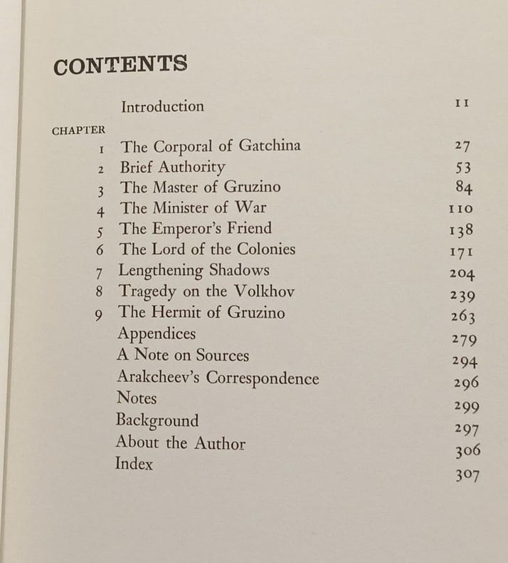 London, Faber and Faber, 1969, in-8°, 312 pp, 8 pl. de gravures hors texte, une carte, index, reliure toile bordeaux éditeur, jaquette illustrée d'un portrait gravé d'Arakcheev, bon état