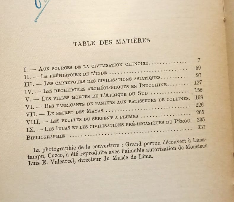 Paris Payot, 1948-1949 1948 in 12 (19x15) Les tomes reliés en 1 volume reliure toilée bleue, pièce de titre de cuir bleu (dos légèrement fané). Tome 1: Mésopotamie, Syrie, Palestine, Egypte. XIV et 308 pages [1], avec 1 carte. Préface du Dr G. Contenau; Volume 2: Chine, Inde, Asie Centrale, Indochine, Afrique, Amérique du Nord, Les Mayas, Mexique, Pérou, Ile de Paques. 320 pages. Préface de René Grousset. Collection '' Bibliothèque historique ''. Bon exemplaire