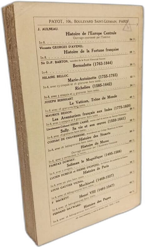 Payot broché Couverture Illustrée Paris 1935 "collection "" bibliothèque historique "" - préface de jacques Bainville - 374 pages en format 14 - 22 cm - taches sur la couverture"