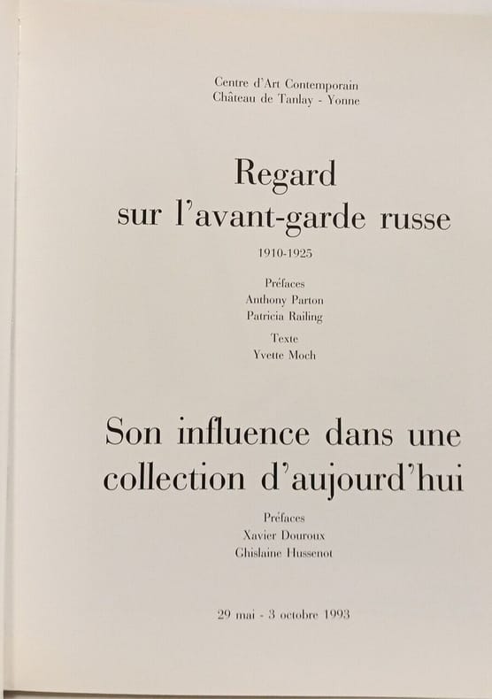 Yonne, Château de Tanlay - Centre d'Art Contemporain, 1993, 21 x 26, 210 pages cousues sous couverture illustrée. Préfaces d'Anthony Parton, Patricia Railing, Xavier Douroux et Ghislaine Hussenot. Texte d'Yvette Moch. Illustrations en couleurs. Catalogue de l'exposition du 29 mai au 3 octobre 1993.