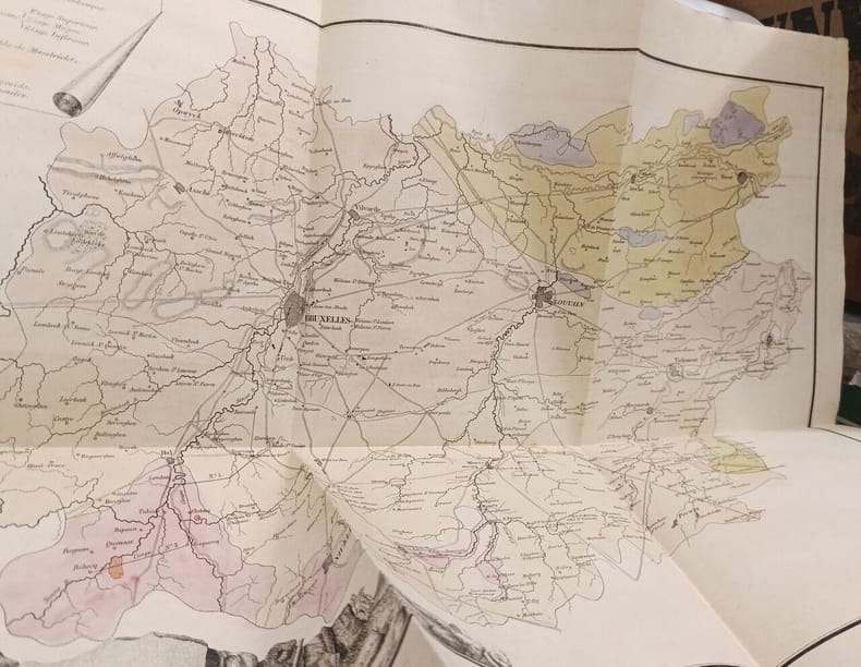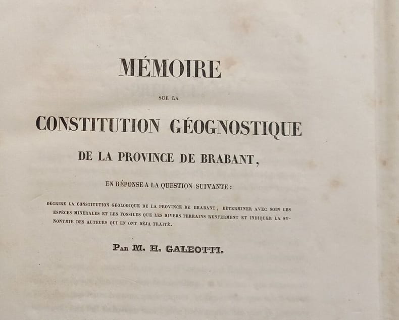 in4. Sans date. Cartonné. Memoire sur la constitution geognostique de la province de Brabant en reponse a la question suivante: decrire la constitution geologique de la province de Brabant determiner avec soin les especes minerales et les fossiles que les divers terrains renferment et indiquer la synonymie des auteurs qui en ont deja traite