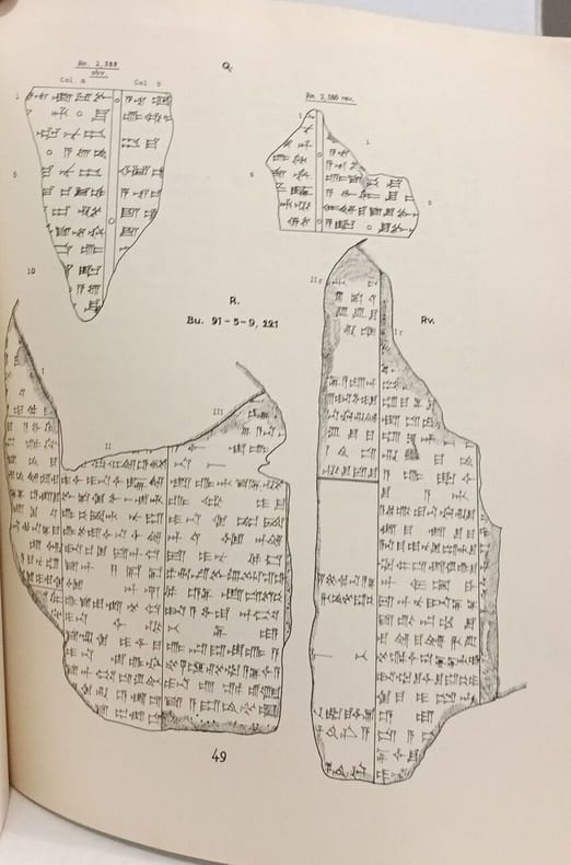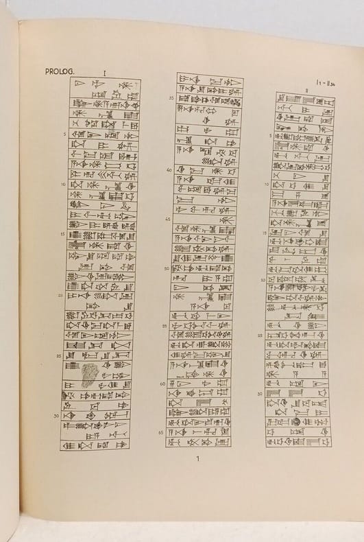 Romae [Rome], Sumpt. Pontificii Instituti Biblici 1930-1932 Complete in 4 volumes: 43 + 42 + 47 + 40pp., 35cm., original softcovers, library label on front cover, spine of vol.4 repaired, in the series "Scripta Pontificii Instituti Biblici", [contains: volume I: cuneiform text, Vol.II: Latin transcription and translation into Latin, vol.III: Vocabulary, vol.IV: table of cuneiform signs], text clean and bright, overall in good condition, X100035
