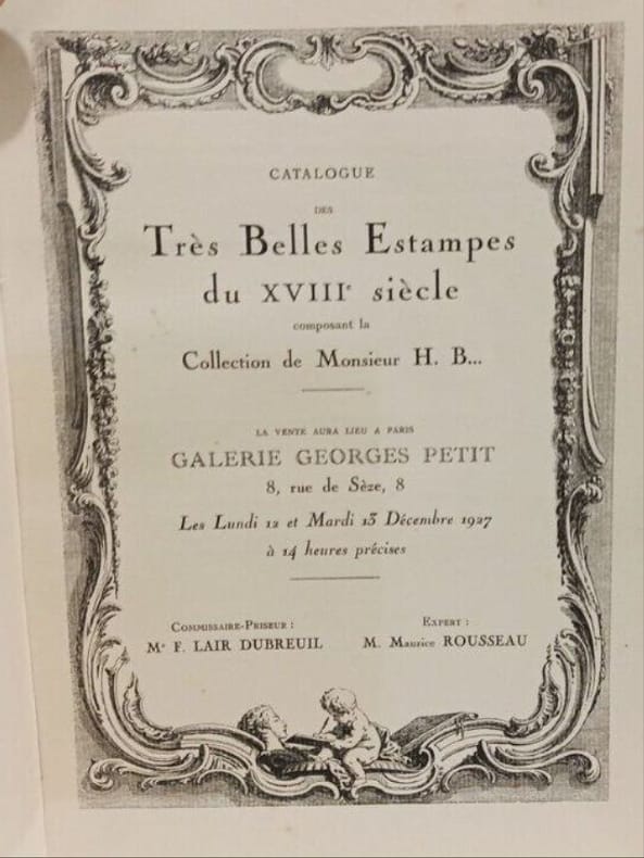1927 G. Petit- Hôtel Drouot, P, 1927-1930. 4 Volume in 4 brochés. Volume I: 266 lots, 32 planches; Volume II: 329 lots, 56 planches; Volume III: 200 lots, 40 planches; Volume IV: 360 lots, 64 planches. Catalogue complet de la vente de l'extraordinaire collection d'estampes de Henri Beraldi.