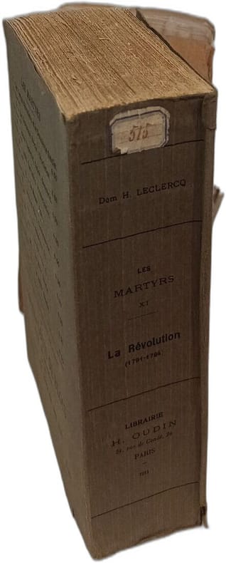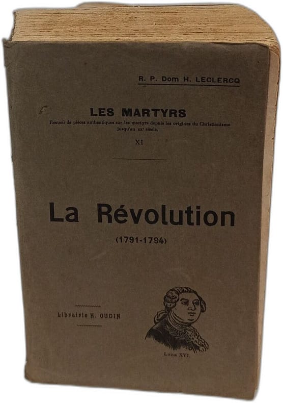 Les Martyrs, Receuil pièces sur les martyrs depuis les origines du christianisme jusqua'au XXe siècle, Tome XI : La Révolution (1791 - 1794) hard cover, 205 x 130 mm, 521 pg, reliure en tissu gris avec étiquette rouge foncé sur le dos avec lettre imprimée dorée, etat correct
