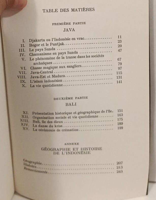 Alban Bensa, Merry Ottin et Bernard Magos ont passé plusieurs mois en Indonésie, à Java et à Bali. Ils y ont rencontré le peuple indonésien, la nature indonésienne (cent vingt et un volcans), les merveilles indonésiennes (Borobudur et Prambanan), les mystères indonésiens. C'est à ceux-ci surtout qu'ils se sont intéressés : ils ont vu les chamanes (sorciers) transformer des hommes en tigre, en singe, en sanglier, en castor ; le dalang, marionnettiste inspiré, évoquer devant un public recueilli les grandes épopées hindoues. Ils ont vu un peuple, à travers danses, rites de possession, opérations magiques, vivre le sacré. Voici un témoignage unique, bouleversant qui ouvre sur ces réalités étranges dont le monde occidental, non sans terreur, reprend conscience.