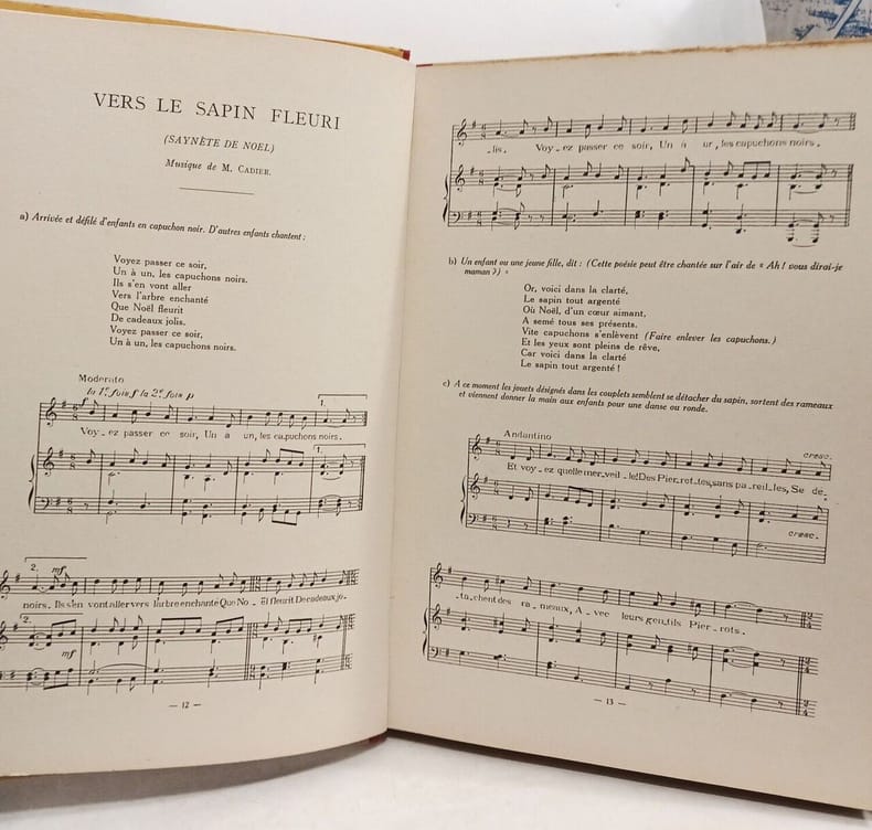 Fernand Nathan Cartonné 1933 In-4 (27.5x19 cm), cartonné, dos toile rouge, couverture en couleurs illustrée par Kuhn-Régnier, 125 pages, partitions, illustrations en noir et blanc ; quelques déchirures sur la couverture, petites traces sur les plats, coins écornés, bon état général. Livraison a domicile (La Poste) ou en Mondial Relay sur simple demande.