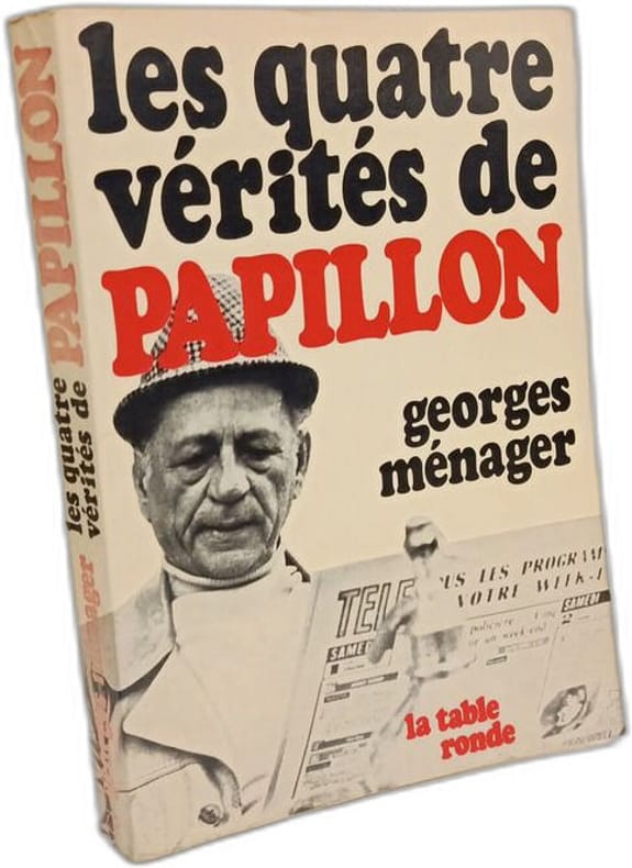 Paris, La Table Ronde, 1979, pt. in-8, br., couv. photo en noir éd., 238 pp., Ce grand Reporter se penche sur la vie de Henri-Antoine Charrière, dit Papillon. Une remarquable enquête sur le "mythe" Papillon. Bon état