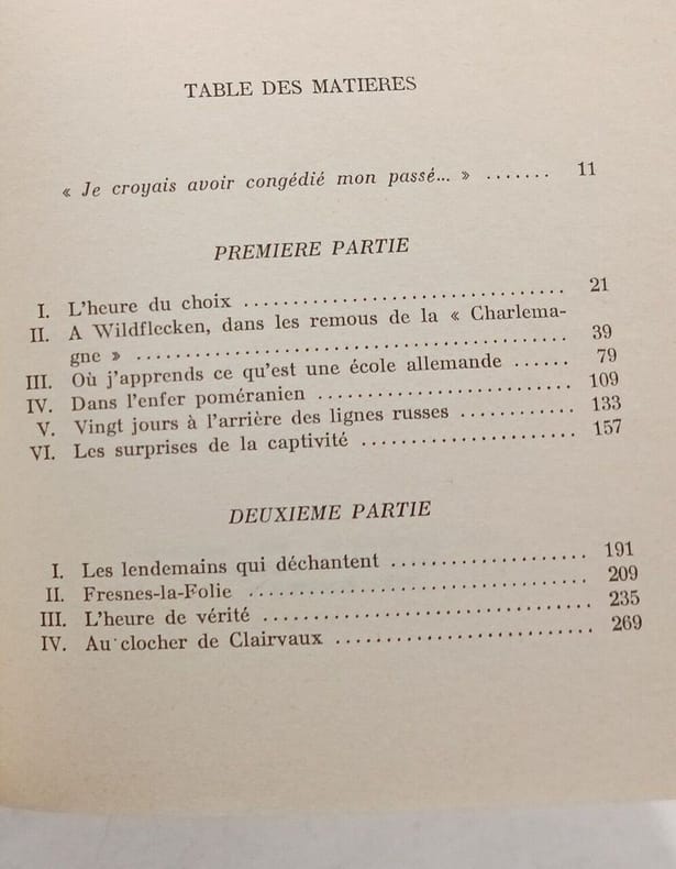 Mémoires d'un Français engagé volontaire dans la Waffen SS en août 1944, ancien de la division Charlemagne, condamné à cinq ans de prison en 1946, devenu après la guerre une figure de Saint-Germain-des-Prés, et célèbre pour son témoignage dans le film "Le Chagrin et la Pitié". — L'instruction au camp de Wildflecken, les combats de Poméranie, la bataille pour Körlin, la capture par les Polonais, l'interrogatoire des Soviétiques, le retour en France, l'arrestation, le procès, etc. — "De tous les témoignages rassemblés par Le “Chagrin et la Pitié”, celui de Christian de la Mazière, assurément, est un des plus saisissants. Comment les Français se sont-ils comportés durant les années d'Occupation ? Bousculant toutes les idées reçues, le film s'efforçait de répondre à cette question difficile. Son audacieuse objectivité allait lui attirer un succès aussi éclatant qu'imprévu. Témoin essentiel, Christian de la Mazière avait une tâche malaisée : n'était-il pas un de ces « maudits » sur lesquels on avait laissé le silence s'accumuler, lui, ancien volontaire de la Waffen-SS française ? A le voir, à l'entendre, on découvrait soudain que l'aventure de ce « paria » avait sa logique, qu'elle correspondait à un moment de la société française. Ce n'était pas un hasard si, en 1944, plus de sept mille hommes avaient partagé le même engagement. De cette division « Charlemagne » qui s'en vint mourir dans les neiges de Poméranie, Christian de la Mazière est un des derniers survivants. Dans le Chagrin de la Pitié, il avait commencé de lever le voile sur toute une part de vérité étrangemment méconnue. Mais il lui fallait la distance d'un livre pour tout dire. Et puisque la vérité naît du vécu, que les faits parlent d'eux-mêmes, il lui fallait raconter son histoire..." (4e de couverture)