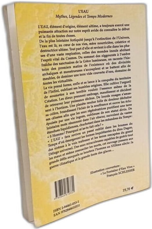 1ere édition Contents, Chapitres : Avant-propos - 1. Traditions antiques : Quelques réflexions sur l'Enuma Elish - Les dieux issus de l'océan et l'océan des dieux - Dagon - Ces étranges civilisateurs venus du ciel et de la mer - De l'eau et de l'au-delà - Un Osiris noyé - Quand l'eau recouvrit les Amériques - 2. Quelques curiosités aquatiques : Vierges noires et eaux miraculeuses - Les vaisseaux fantômes - Ys, la maudite - Les sirènes et autres voix de la mer - Les pluies selon Charles H. Fort - Le pont, symbole du passage - 3. Et aujourd'hui : Vers la catastrophe ? - La guerre climatique - La grande fonte des glaces - Les secrets de l'eau - Postface bel exemplaire, très frais