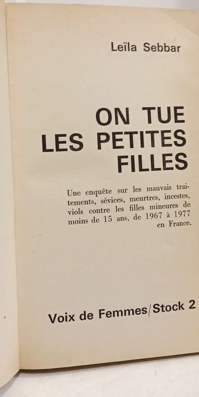 Stock 1978 in8. 1978. Broché. On tue les petites filles - Une enquête sur les mauvais traitements sévices meurtres incestes viols contre les filles mineures de moins de 15 ans de 1967 à 1977 en France - Collection " voix de femmes "
