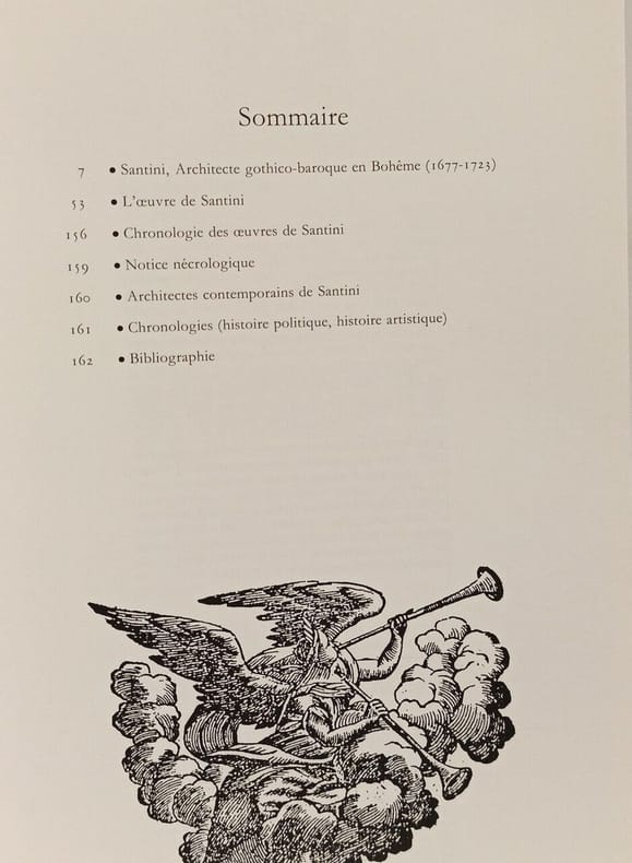 Jacques Damase éditeur, Paris, 1989. In-8, broché sous couverture rempliée et illustrée en couleurs, 163 pp. Santini, architecte gothico-baroque en Bohême (1677-1723). - L'œuvre de Santini - Chronologie desœuvres de Santini - Notice nécrologique - Architectes contemporains de Santini - Chronologies (histoire politique, histoire artistique) - Bibliographie.