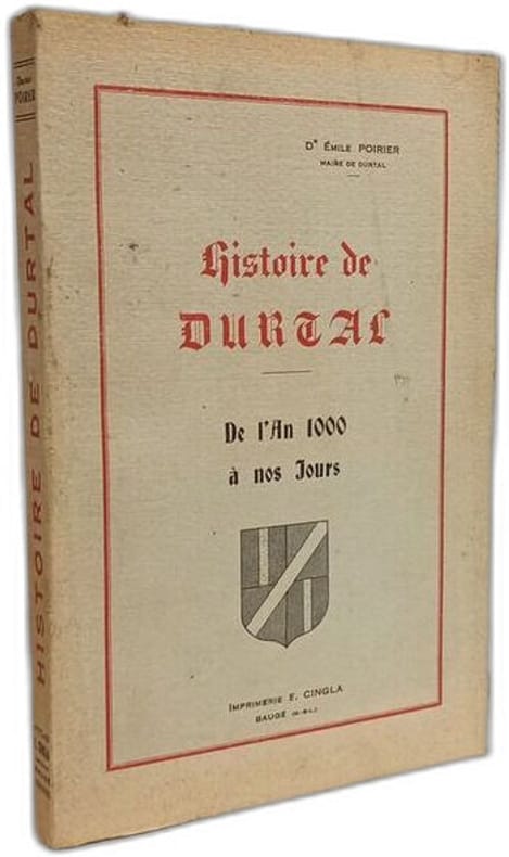 Imprimerie E. Cingla, Baugé, 1960, documents photos hors texte, blasons des principales familles de durtal, bibliographie, broché, 196pp. très bon état, 245x165. (p4)