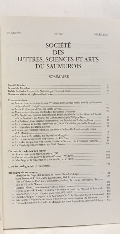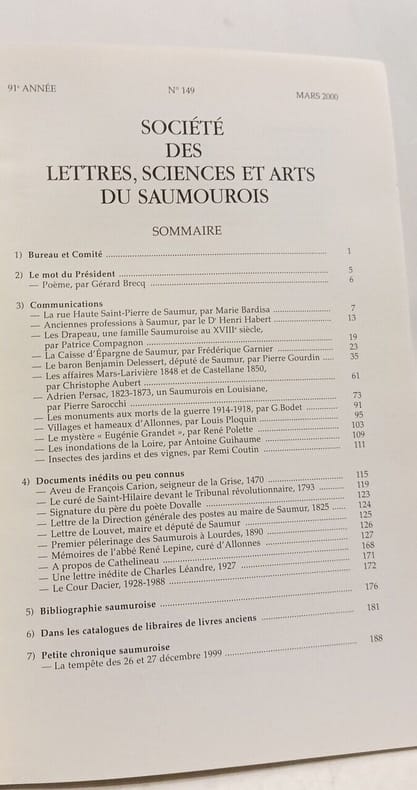 Société des lettres sciences et arts du Saumurois in8. Sans date. Broché. 6 volume(s).