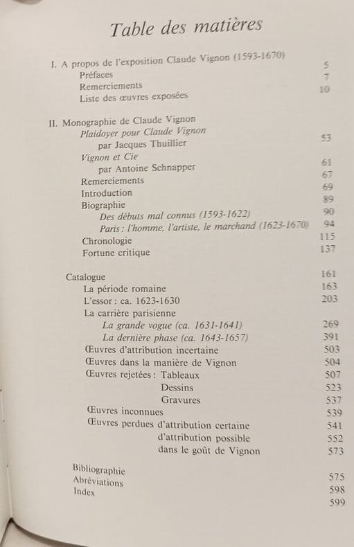 Bassani, Paola Pacht (with a preface by Jacques Thuillier): Claude Vignon 1593-1670. Exhibition: Tours, MusÃe des Beaux-Arts, 1993. 620pp with 45 colour plates and 650 monochrome illustrations. Hardback. 28x21cms. The fruit of 15 years' research, this catalogue raisonnà (published for a travelling exhibition celebrating the fourth centenary of the birth of Claude Vignon) is the first monograph devoted to the life and work of the artist, now considered one of the greatest of his time. The catalogue includes: uncertain attributions; works in the style of Vignon; rejected paintings, drawings and engravings; unknown works; lost works of certain and possible attribution and those in the style of Vignon. With bibliography, index. Text in French.
