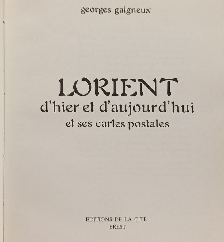 Table : le port de guerre et l'arsenal - l'intr muros - le port de commerce le quai des Indes - la nouvelle ville Merville - le Perrière, Kéroman, le port de pêche - Kérentrech - promenades aux environs de Lorient - coiffes et types lorientais.