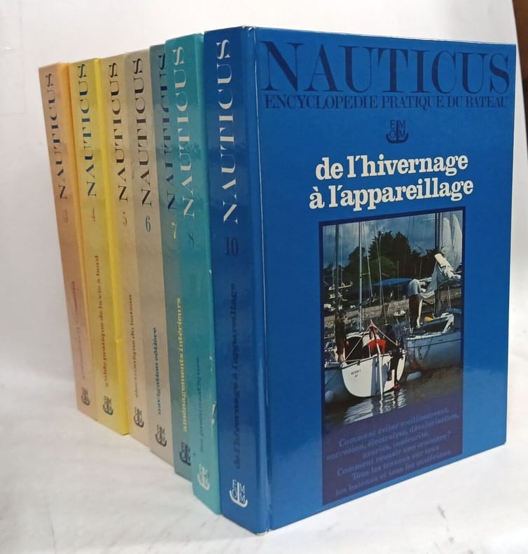 Robert laffont in4. Sans date. Cartonné. 7 volume(s). Nauticus. Encyclopédie pratique du bateau.3. Gréements et armement. 4. Guide pratique de la vie à bord. 5. Electronique du bateau. 6. Navigation côtière. 7. Aménagements intérieurs. 8. Les pneumatiques. 10. De l'hivernage à l'appareillage