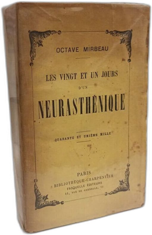 Edition originale sur papier courant. Reliure en demi chagrin chocolat à coins, dos lisse orné d'un cartouche doré enrichi de motifs décoratifs dorés, date dorée en queue, encadrement de filets dorés sur les plats de papier marbré, gardes et contreplats de papier à la cuve, couverture conservée, tête dorée, reliure de l'époque. Infimes déchirures avec, parfois, minuscules manques sans gravité en têtes des toutes dernières pages du volume. Précieux envoi autographe signé d'Octave Mirbeau à Lucien Guitry : "... bonjour... mais chut... ne lisez pas ça... Avec toute mon amitié..." - Photographies et détails sur www.Edition-Originale.com -