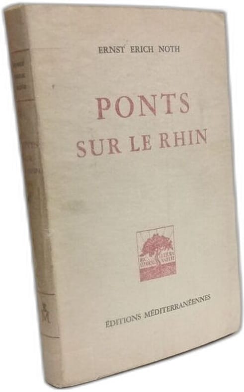 Livre écrit directement en français. Ponts sur le Rhin est dédié à la mémoire de Louis GILLET. Coupure de presse jointe.* Paul Albert Krantz, dit « Ernst Erich Noth », né le 25 février 1909 à Berlin et mort le 15 janvier 1983 à Bensheim, est un écrivain et spécialiste de la littérature allemande. Poursuivi par les nazis, il émigre en France en 1933, et Il sinstalle ensuite dans le sud de la France, où il est rédacteur du journal Les Cahiers du Sud jusquen 1940, avant de fuir aux États-Unis en 1941 lors de lOccupation allemande. Il y obtient la nationalité américaine en 1948, mais retourne en Europe en 1963 et en Allemagne en 1970. Photos sur demande.