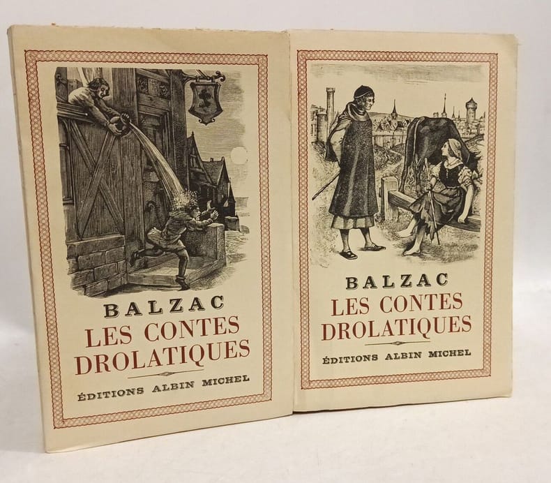 1973, Michel de l'Ormeraie, in-8 cartonné de 282 pages, couverture skyvertex bordeaux, décors dorés sur les plats et le dos, titrage et tomaison dorés dans pièce de titre noir sur le dos, tranches dorées, oeuvres illustrées de Balzac, Contes drolatiques, tome II, fac similé de l'édition originale de 1885, illustrations de Gustave Doré, au sommaire : les 3 clers de saint Nicholas, Ieusne de françois I, Bons propos des religieuses de Possy, Comment feut basty le chateau d'Azay, la faulse courtisane, danger d'estre trop cocquebin, la chiere nuitée d'amour, Le prosne du ioyeulx curé de Meudon, le succube | Etat : Très bon état général (Ref.: ref98108)