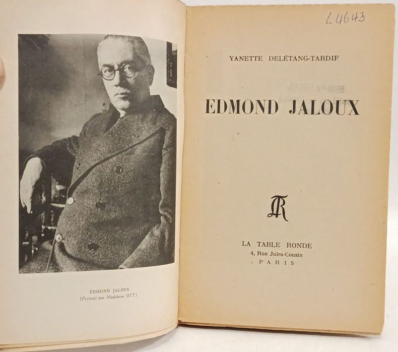 s.d. Un manuscrit. 25 x 38 cm. 116 p. numérotées 1 à 110 (+ une p. dex-dono, une de titre n. ch., ainsi que quatre pp. dactylographiées additionnelles numérotées 14, 33, 34 et 35bis). Le manuscrit, entièrement écrit à la plume par Edmond Jaloux, est raturé et porte de nombreuses corrections dauteur. Il sagit vraisemblablement ici de la copie remise à limprimeur, comme le montrent les multiples indications typographiques (tailles des caractères, sauts de paragraphes, etc.), ainsi que la mention suivante, écrite sur la page de titre: «A composer, 22/6/33». Lensemble porte de fréquentes salissures dues à une manipulation intense, mais est bien complet de tous ses feuillets, fort lisible et en très bon état.