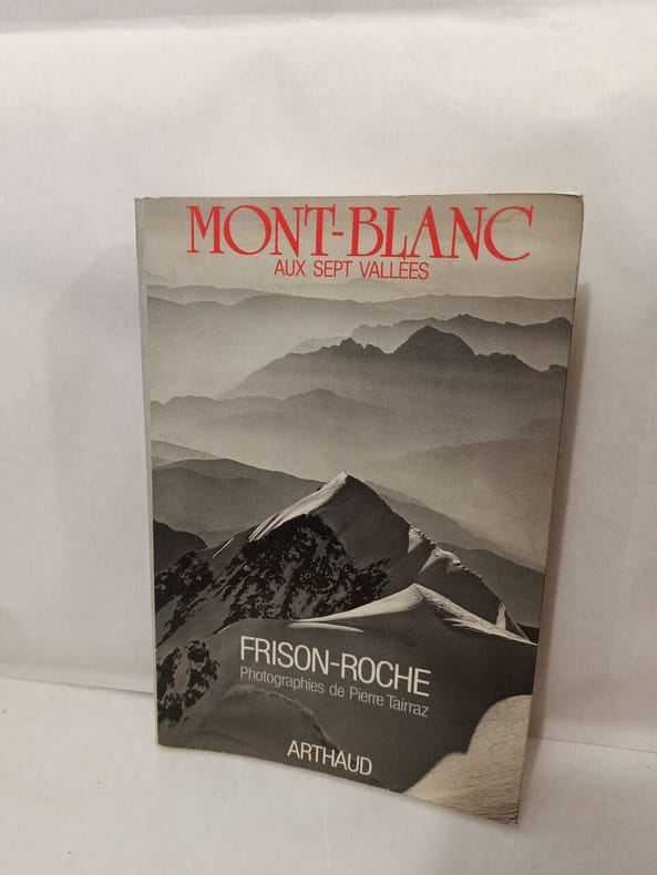 Arthaud, 1959, gr. in-8°, 271 p., avec 170 héliogravures + 1 gr. carte géogr. ‘Les sept vallées du Mont Blanc’ non relié, reliure en toile originale illustrée + rhodoïd. Bel exemplaire de la première édition avac la carte.