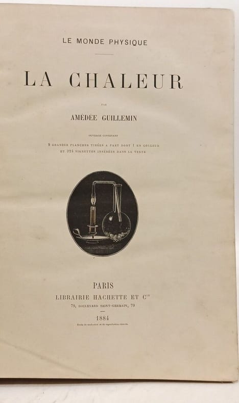1884 Paris librairie Hachette et Cie .1884 volume in 4- 1,TOME 4 : LA CHALEUR. contenant 9 grandes planches tirées à part dont 1 en couleur et 324 vignettes inséraes dans le texte . 772 pages. EDITION ORIGINALE. en pleine reliure editeur richement décorée.en pleine percaline editeur uniforme rouge , noire et or , dos et plats très ornés , les trois tranches dorées , RELIURE EN ETAT PARFAIT . RECHERCHE surtout EN PLEINE RELIURE EDITEUR ,bon état.