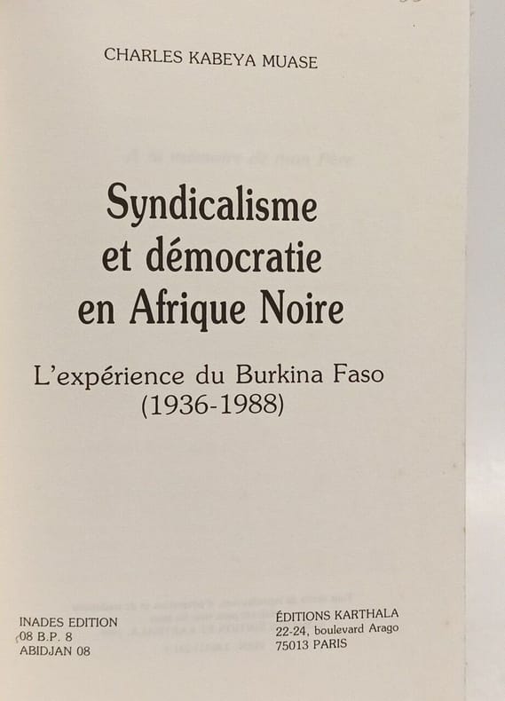 Naissance du syndicalisme voltaïque. Politique d'assimilation des naissances des syndicats. Les syndicats sous le régime de Lamizana... Classification Dewey : 97.2-Dédicace, envoi