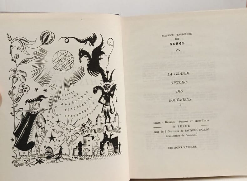 Texte, dessins, photos et hors-texte de Serge, orné de 3 gravures de Jacques Callot (Collection de l'auteur).Bibliographie bohémienne in-fine.