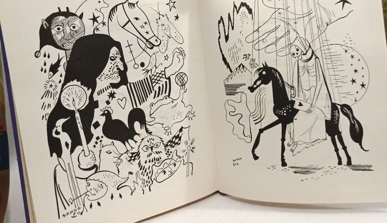 Editions Karolus 1963. In-8 cartonnage éditeur, pleine toile violette, de 374 pages au format 18 x 3,5 x 23,5 cm. Couverture avec titre et motif doré. Dos rond avec titre doré. Plats et intérieur frais. Etude sur les Bohémiens avec textes, superbes illustrations et photos par Maurice Feaudièrre, dit Serge. Contient aussi trois gravures de Jacques Callot, provenant de la collection personnelle de l'auteur. Superbe état général. Edition originale. Précieux exemplaire enrichi d'une magnifique dédicace autographe signée et d'un superbe dessin original pleine page de Serge.