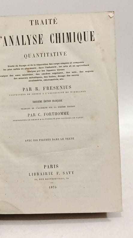 7e édition française traduite de l'allemand sur la 6e édition par L.Gautier. Classification Dewey : 540-Chimie et sciences connexes