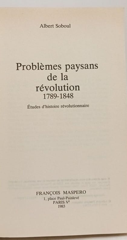 François Maspero. 1982. In-8. Broché. Etat d'usage, Couv. convenable, Dos satisfaisant, Papier jauni. 442 pages.. . . . Classification Dewey : 944.04-Révolution de 1789