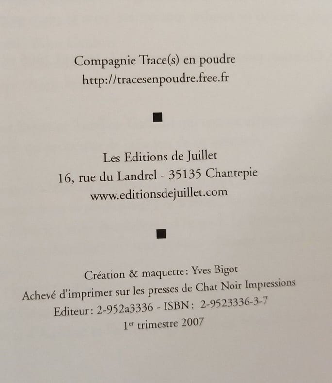 De Juillet 2007 in8. 2007. Broché.