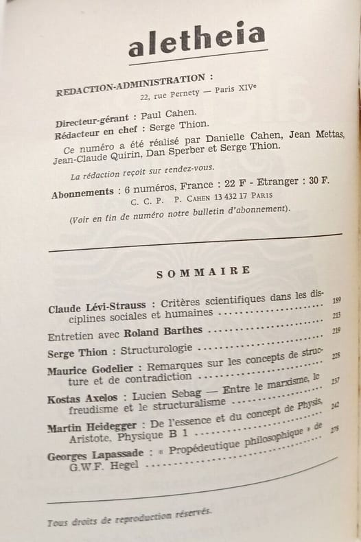 Aletheia 1966 in8. 1966. Broché.