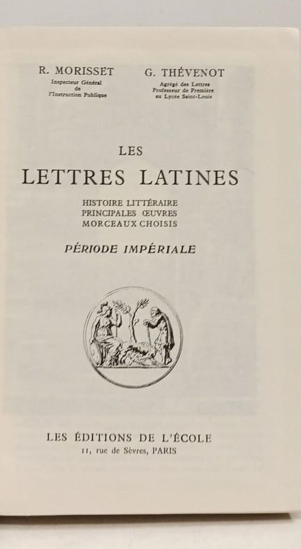 3 volumes. Tome I : Période de formation. L'Epoque Cicéronienne. Tome II : Siècle d'Auguste. Tome III : Période Impériale. Classification Dewey : 372.65-Livre scolaire : langues