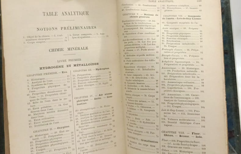 3 vol. dont 1 vol. in-4 et deux vol. petit in-4 reliés demi-chagrin rouge, dos à 5 nerfs dorés, contenant les épreuves corrigées ou avant impression des sections suivantes figurant dans le "Traité de Chimie Minérale" publié chez Masson & Cie de 1904 à 1906 : Vol. I : Soufre - Mercure ; Vol. II : Fer - Manganèse - Molybdène - Tungstène - Chrome - Plomb - Outremers - Céramique ; Vol. III : Bismuth - Vanadium - Noibium - Cantale - Bore - Uranium - Thallium - Or - Métaux du Platine